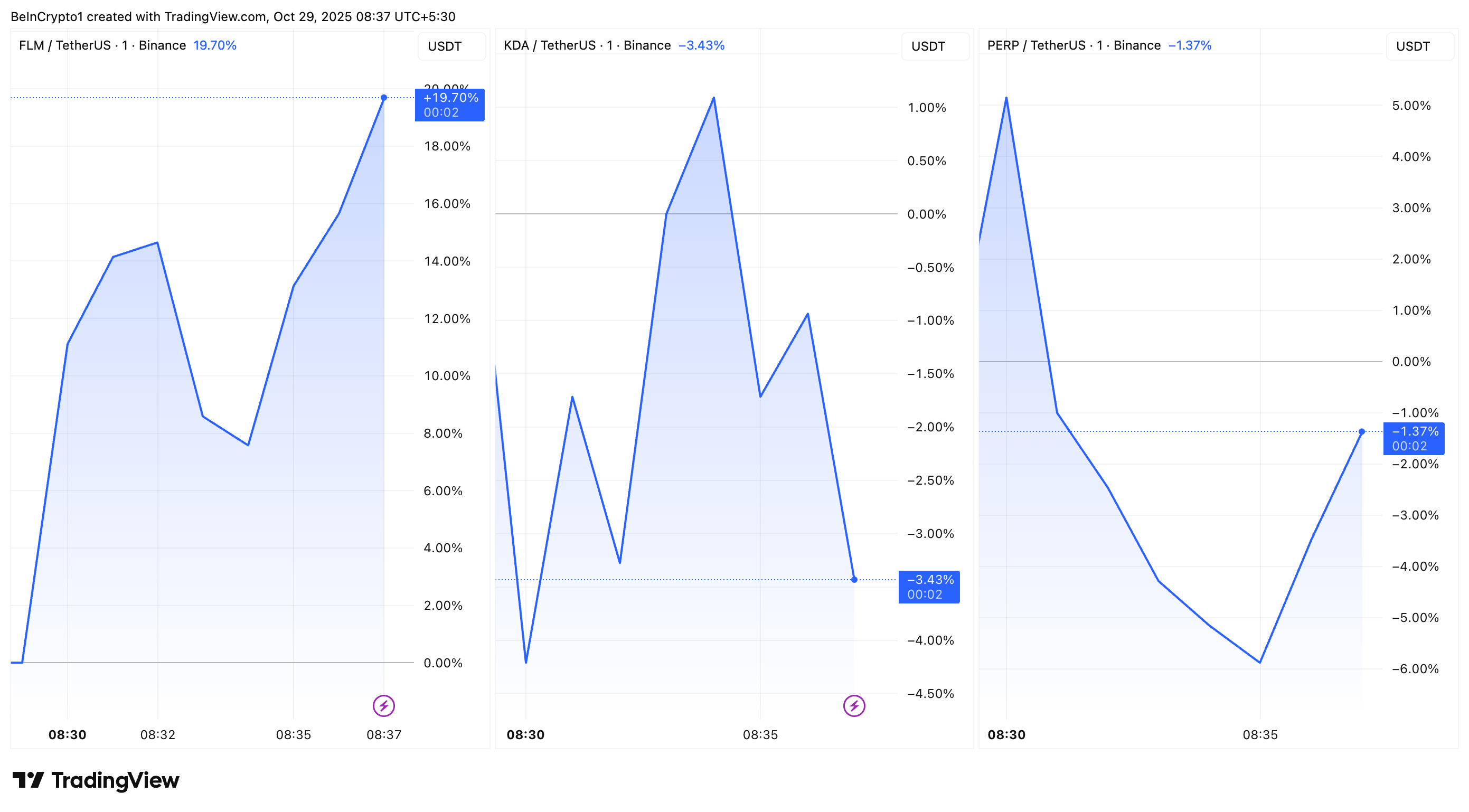 Price performance of FLM, KDA and PERP after Binance delisting. Source: TradingView