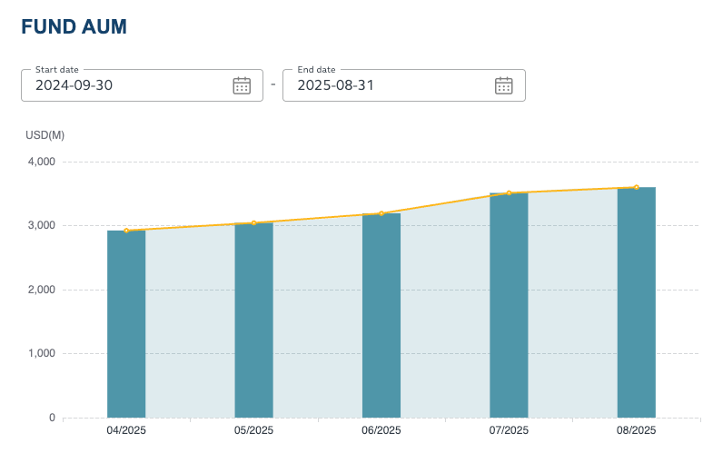 The fund has grown steadily since its inception, with assets under management increasing 24% from $2.9 billion in April to $3.6 billion in August, according to data from the Hong Kong Stock Exchange (HKEX).