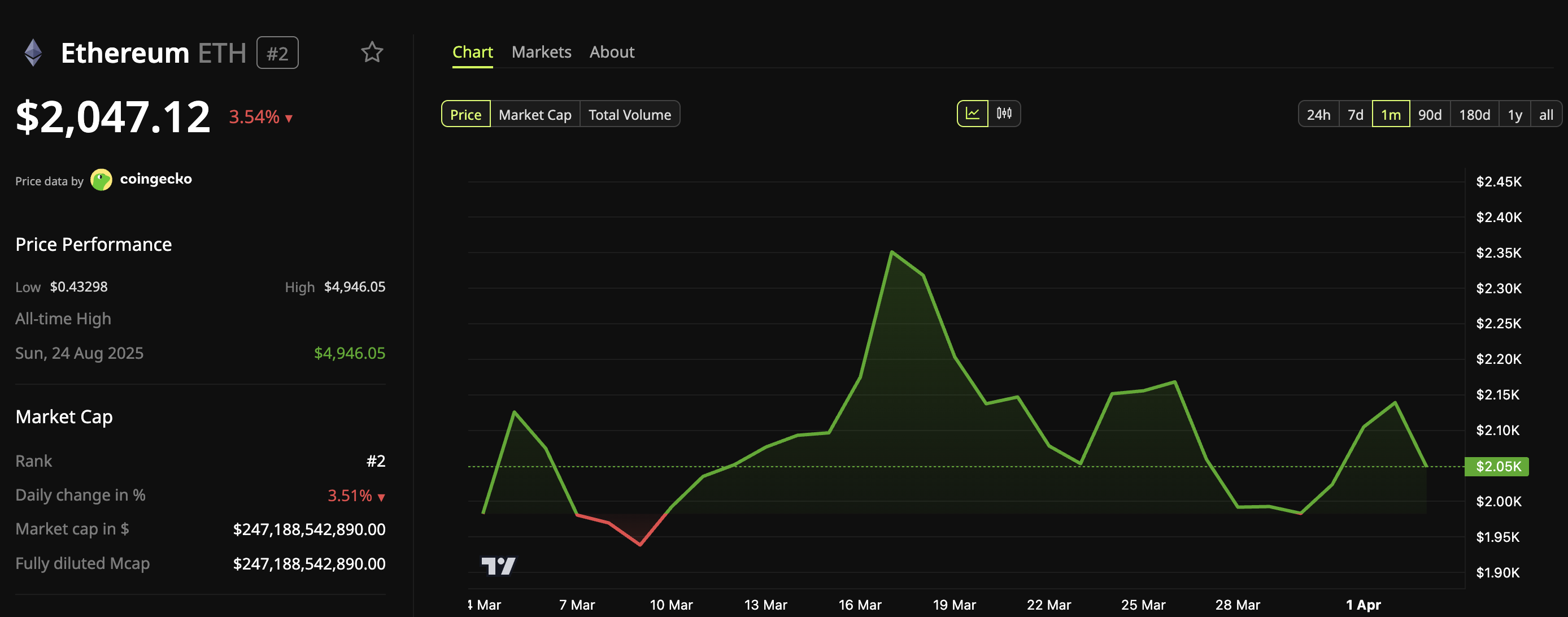Ethereum ($ETH) fell 3.5% in the past 24 hours amid geopolitical tensions.
