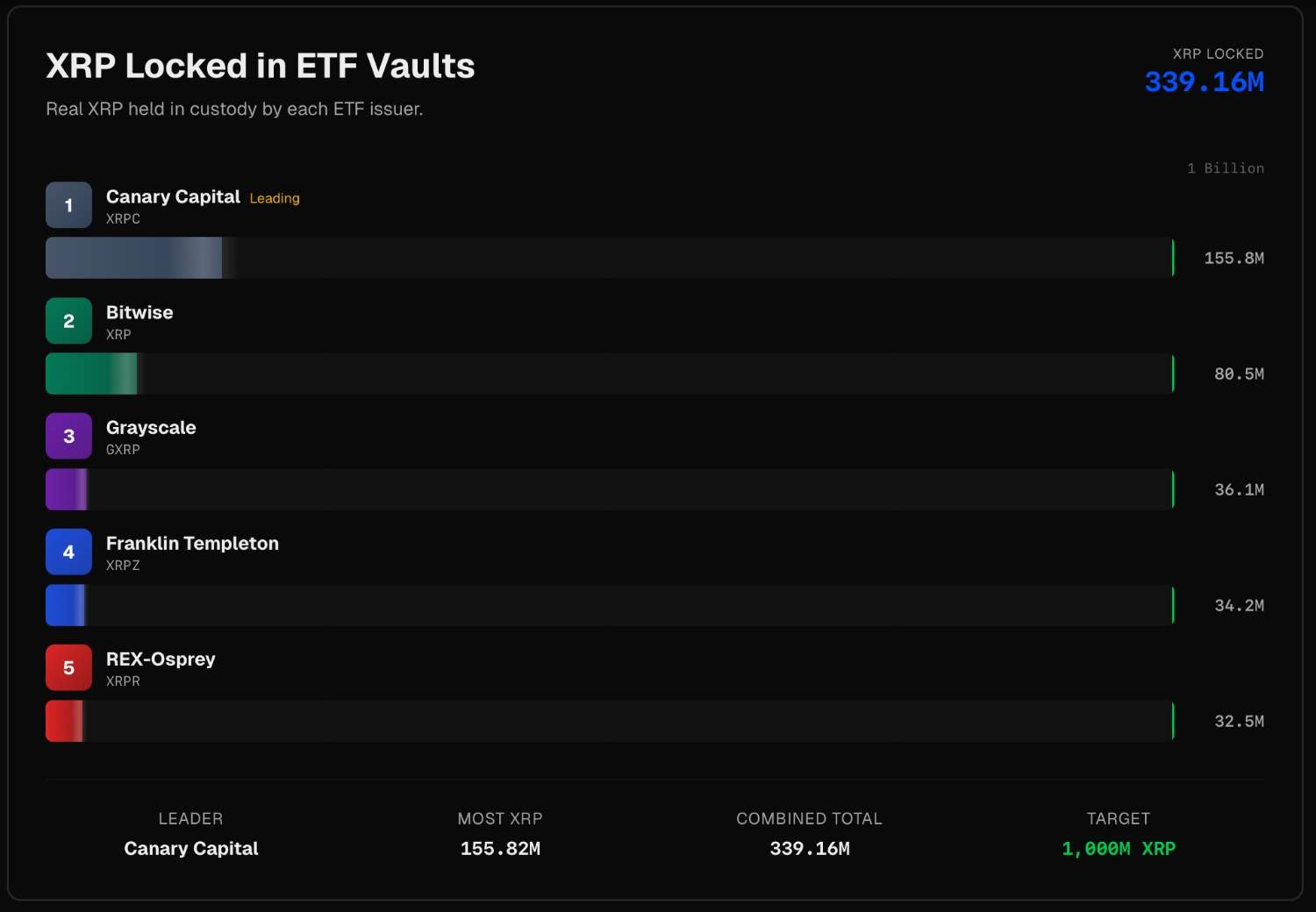 As of November 28, 2025, the five currently active ETFs had a total AUM of $801.7 million with 339.16 million XRP locked, representing 0.339% of circulating supply, and although it is early days, there is a clear shift in institutional positioning for this asset.